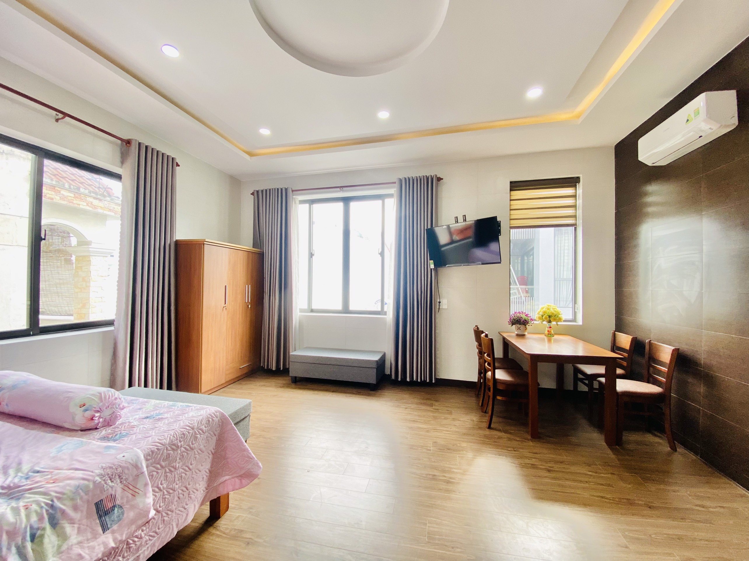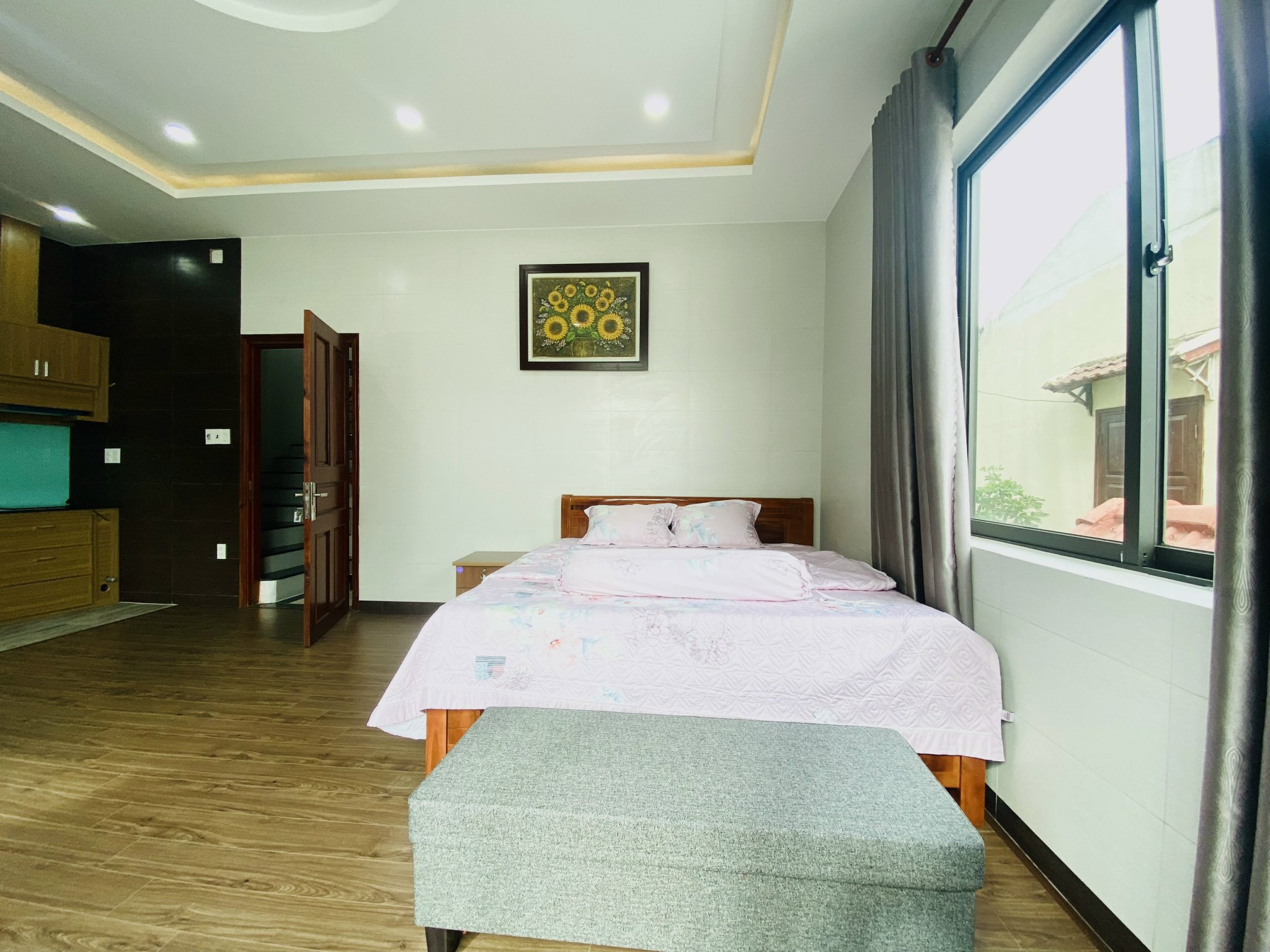 빈컴 근처 한강 다리 바로 옆에 있는 1인실 침실 창문