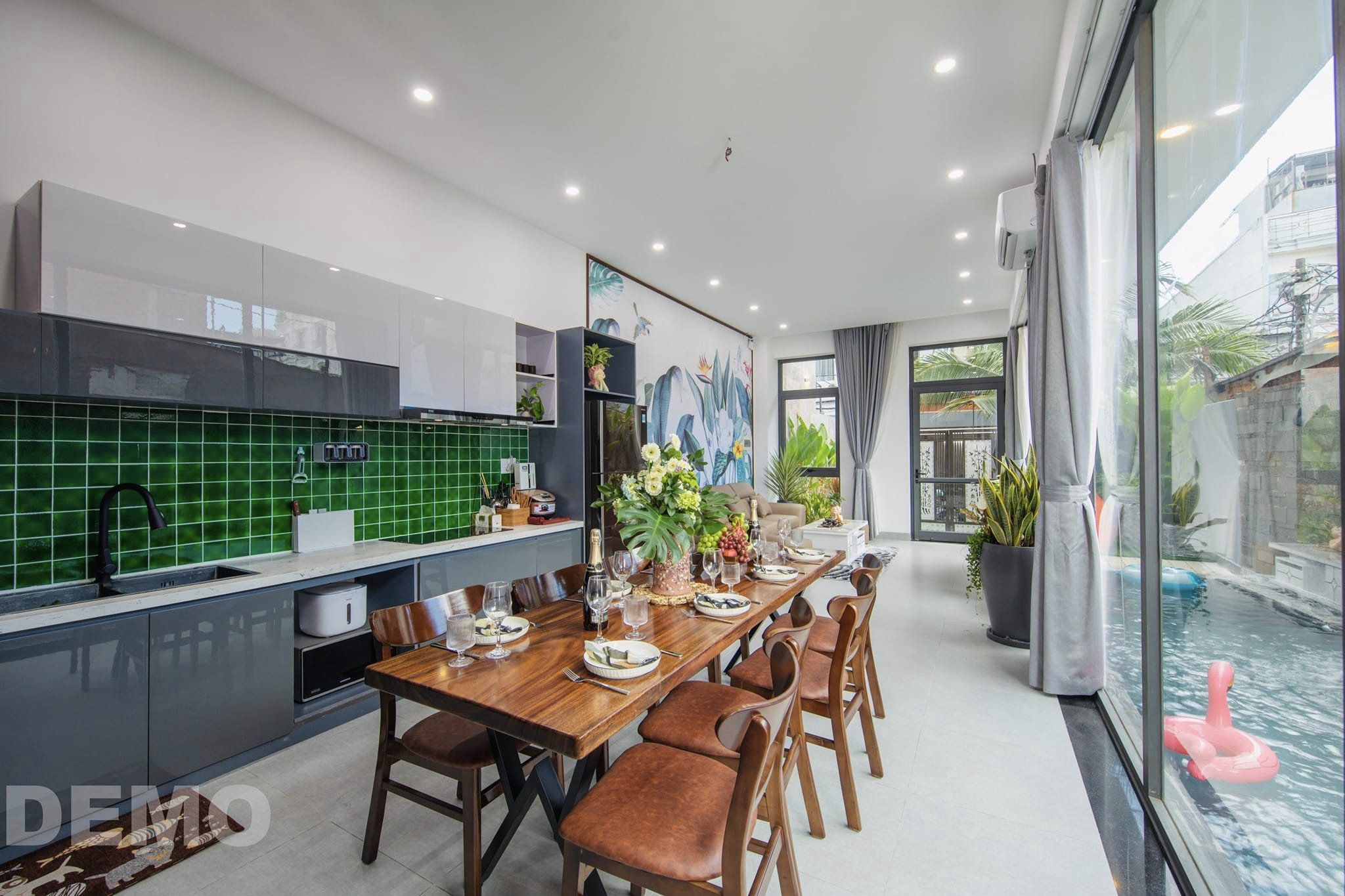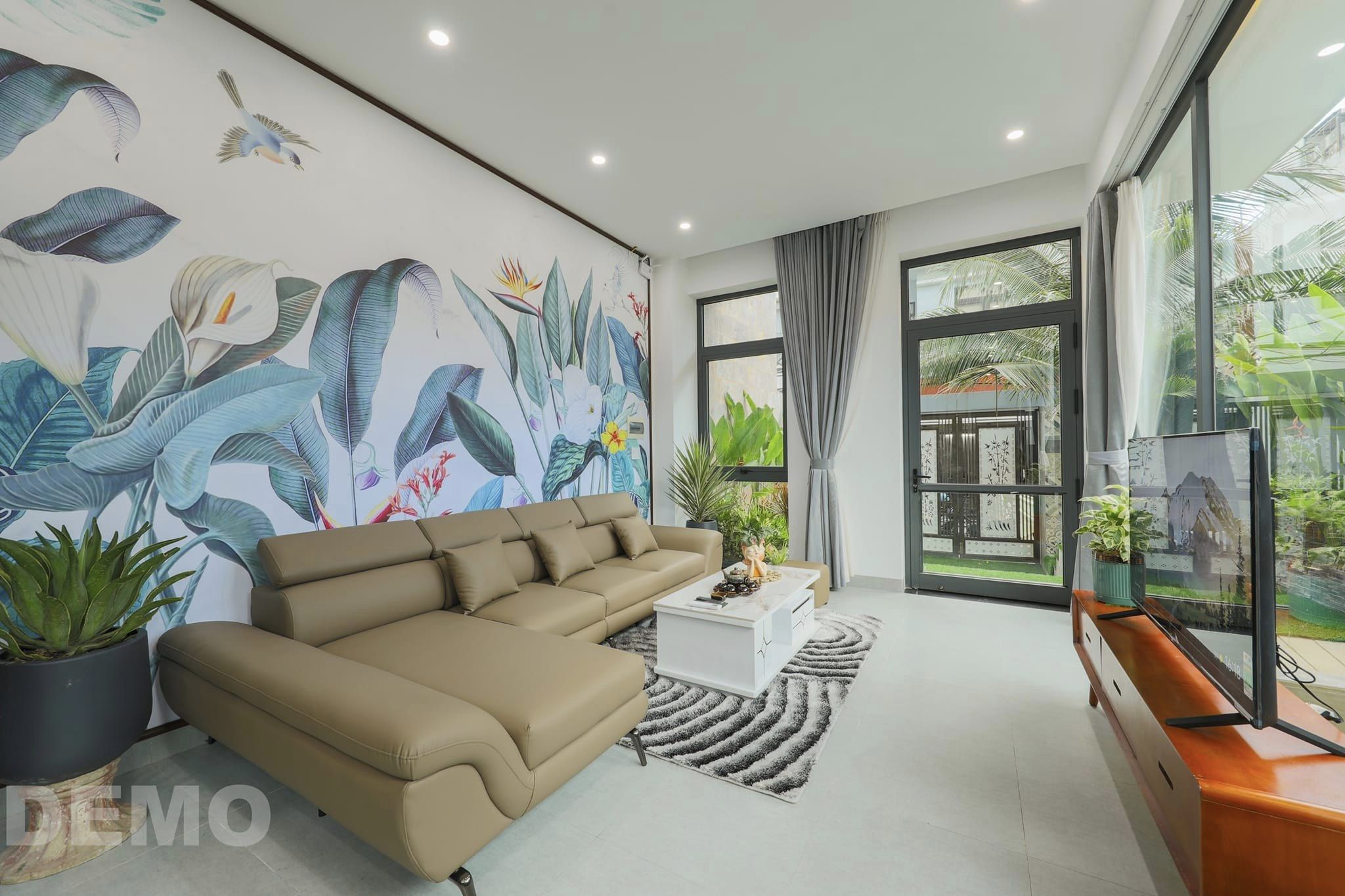 빌라는 넓은 거실을 가지고 있다.